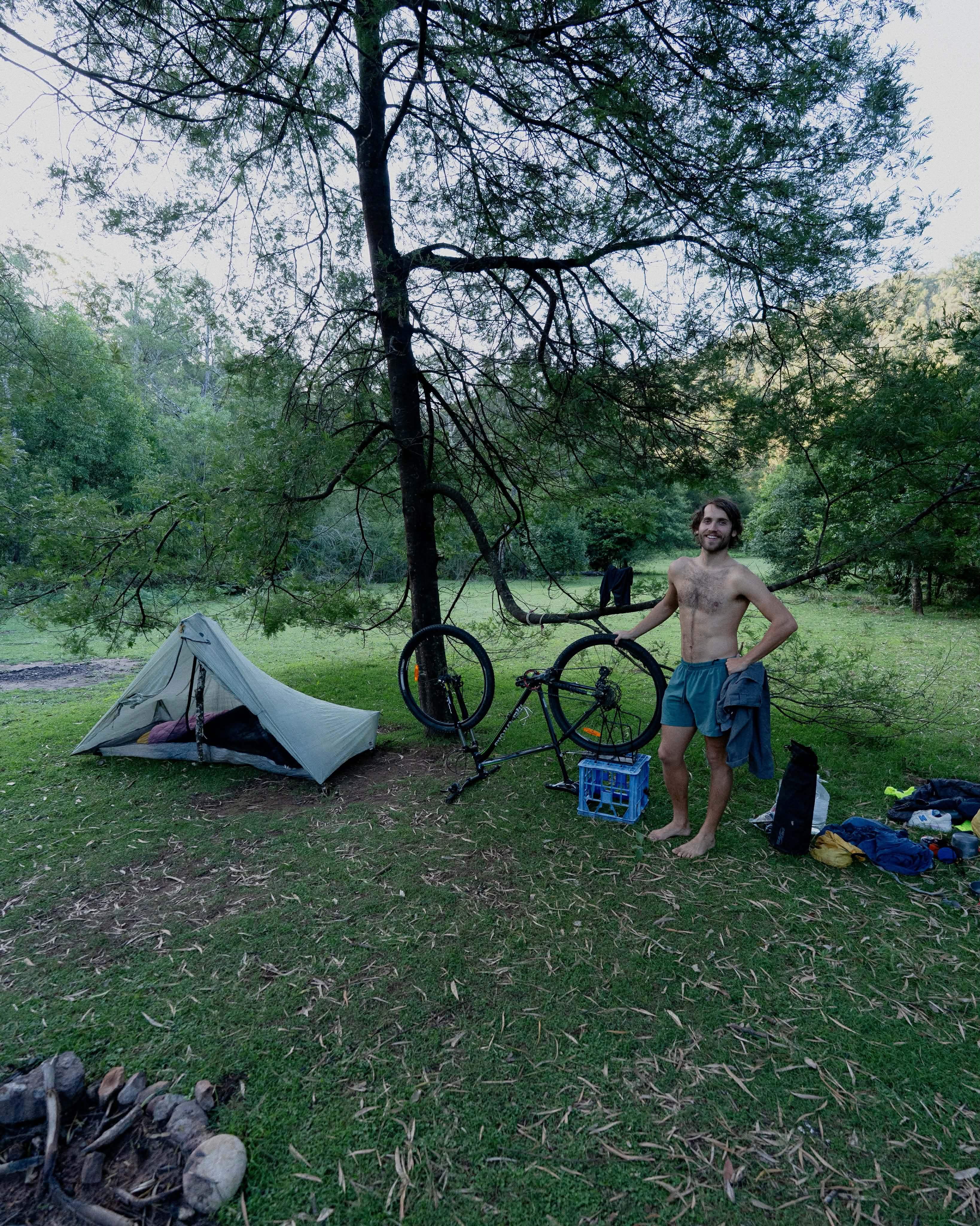 At camp, I threw Milky to the ground, immediately stripped and ran down to the river. We needed some space. After an entire block of Cadbury, a pouch of tuna, an apple, a bag of Red Rock Deli chips, a granola bar, some Jatz, a heaping of cheese and half a tube of cured chorizo, I felt much better and apologised to her. By the time other people rolled into camp I had got her upright, pumped the tires and reindexed the gears. Stationed next to my tent, we made quite the aesthetic couple.